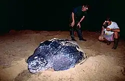Awala and Yalimapo are French Guiana's northernmost settlements, located just to the south of the région's northernmost point, the beach of Plage des Hattes, the world's largest leatherback turtle nesting site.[7] The Amana Nature Reserve has been established in 1998 to protect the turtles. The reserve covers 14,800 hectares.[8]