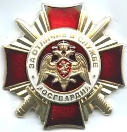 The National Guard of the Russian Federation came into being on April 5, 2016 by decree of the President of the Russian Federation № 157.[1] Being a uniformed paramilitary organisation, it has its own awards system subordinate to State awards of the Russian Federation.[2]