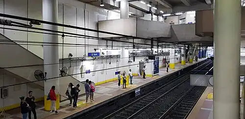 Ayala station, also known as Ayala Avenue station and Ayala Center station, is an underground Metro Rail Transit (MRT) station located on the MRT Line 3 (MRT-3) system in Makati. It is one of two underground stations that can be found on the line, the other being Buendia. The station is located in Makati and is named so due to its proximity to two places bearing the Ayala name: Ayala Center and Ayala Avenue.