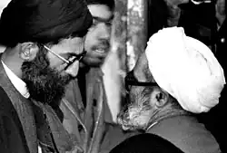 Montazeri initially rejected Khomeini's proposal to make him his successor, insisting that the choice of successor be left to the democratically elected Assembly of Experts.[18] Later, Montazeri relented, and following a session of the Assembly of Experts in November 1985, he was officially appointed Khomeini's successor as Supreme Leader.[7][19][20]