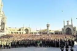 On 21 December, hundreds of thousands of mourners and the Iranian Green Movement turned out at Montazeri's funeral and turned it into a protest against the government. The funeral began at his house and prayers were held at the Grand Mosque in Qom.[62] After special prayers by Ayatollah Mousa Shabiri Zanjani,[63] Montazeri's body was laid to rest in the Fatima Masumeh Shrine.[64] He was buried alongside his son, Mohammad.[65][66]