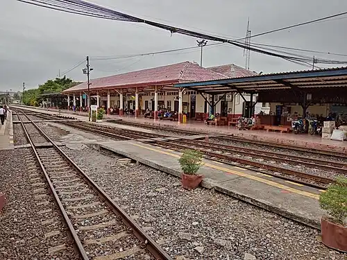 Ayutthaya station (Thai: สถานีอยุธยา), is one of the main railway stations of the Northern Line and the Northeastern Line in Phra Nakhon Si Ayutthaya province, located 71 km (44.1 mi) away from Bangkok railway station. It serves 77 trains per day, equivalent to 10,000–12,000 people passing through daily. Every passenger train passing this station must stop here.[1]