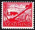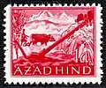 1 Anna | Lilac red | For the Andaman and Nicobar Islands without surcharge: Ploughing farmer in front of a mountainous landscape. In front of it a plough and sheaves |