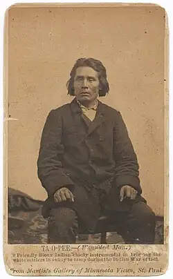 - ^ Taopi; Whipple, Henry Benjamin (1912). "Statement of Taopi, Chief of the Farmer Indians". Lights and Shadows of a Long Episcopate. New York: The Macmillan Company. p. 113.
