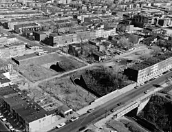 Constructed by the Baltimore and Potomac Railroad under Winchester Street and Wilson Street in Baltimore, the tunnel opened on June 29, 1873.[4] The construction of the tunnel required 13 million bricks and the waste dirt was used to shore up several areas of the city allowing for the construction of more homes and buildings.[5] The B&P tunnel allowed the Pennsylvania Railroad (PRR) direct access to Washington, D.C., for the first time by connecting its Northern Central Railway affiliate, which arrived in Baltimore from the north, to the Baltimore and Potomac's new spur, which ran to Washington, D.C.[6]
