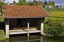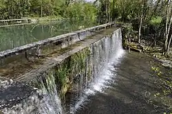 In Charmes, the land of springs, fountains and water ditches of the Bèze basin, the water is flush with the soil so that the inhabitants of the region name the place "the fishpond" . It is in fact the moat of an old castle. There the Bèze is fed into a small stream, the Gailloux.[35] In Savolles, even though the Bèze does not cross the territory of this municipality, a reserve of water in case of fire was created on the ridge line between the Bèze and the Albane, filled in the 1950s during the erection of the water tower.[36]