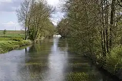 Flooding is never very significant since the river benefits from the regulating effect of the large underground water table. The instantaneous flow for peak flood is 13 cubic metres per second (460 cu ft/s) and the maximum for a five-year flood is 16 cubic metres per second (570 cu ft/s). This rises to 17 cubic metres per second (600 cu ft/s) for a ten-year period, 19 cubic metres per second (670 cu ft/s) or a 20-year period and 20 cubic metres per second (710 cu ft/s) for a fifty-year period.[1] The greatest instantaneous flow recorded was 17.8 cubic metres per second (630 cu ft/s) on 18 December 1982, and the greatest daily average was 17.3 cubic metres per second (610 cu ft/s) on 21 December 1982. This flood was lower than the 20 year level, so was by no means exceptional. It might be expected every 15 years on average.[1]