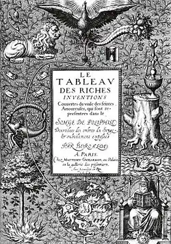 François Béroalde de Verville (27 April 1556 – 19–26 October 1626) was a French Renaissance novelist, poet and intellectual. He was born in Paris, the son of Matthieu Brouard (or Brouart), called "Béroalde", a professor of Agrippa d'Aubigné and Pierre de l'Estoile and a Huguenot; his mother, Marie Bletz, was the niece of the humanist and Hebrew scholar François Vatable (called "Watebled"). At the time of the St. Bartholomew's Day Massacre, his family fled to Geneva (1573), but Béroalde returned to Paris in 1581. During the civil wars, Béroalde abjured Calvinism and joined the factions around Henri III of France (he may also have served in the army). In 1589 he moved to Tours (the French parlement fled here from 1589-1594), and became chanoine (canon) of the cathedral chapter of Saint Gatien, Tours, where he remained until his death.