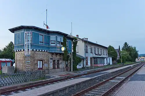 Büdingen (Oberhess) station is a station on the Gießen–Gelnhausen railway (also known as the Lahn-Kinzig Railway) in the town of Büdingen in the German state of Hesse. The station is located in the centre of the town. Büches-Düdelsheim station is also located in the municipality, in the district of Büches. The station is classified by Deutsche Bahn (DB) as a category 5 station.[1]