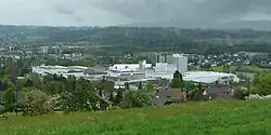 In 1900, Bühler employed 717 factory workers and 72 office staff, whose number increased to 1400 by 1920.[8] Bühler opened its first canteen in 1918. During the expansion and electrification of the railroad line from Wil to St. Gallen in 1927, an industrial track was built from the station of Uzwil to the company premises.[5]