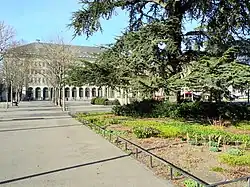 Stadthausanlage, the site of the former Kratzquartier accommodation and Bauhaus district at the Bauschänzli, was added in 1833 by landfill made up of rubble from the Baroque city fortification along the lake shore. This also marked the end of the medieval Kratzquartier as the distinctive urban axis, extending from Zentralhof, Kappelerhof and Münsterhof towards the Bürkliterrasse, where the poorer citizens of Zurich once lived. The medieval quarter was thoroughly overhauled between 1836 and 1900, for the purpose of developing a 'modern lakeshore city' in this large area.[19] The area was reserved for the construction of new representative commerce buildings and the new federal parliament building, which was never built, but the Stadthaus was constructed at the former site of the Fraumünster abbey's building. As in 1848 the parliament building was erected in Bern. The site was used for a public city park that was named after the nearby old town hall (Stadthaus), and in 1922 the Swiss National Bank building was added.[13]