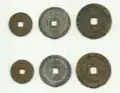 The last cash coin ever produced in the world bears the name of Bảo Đại in Chữ Hán. There are three types of this coin. Large cast piece with 10 văn inscription on the reverse, medium cast piece with no reverse inscription, and small struck piece. All were issued in 1933.