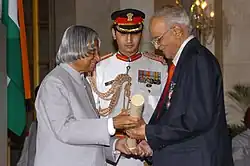 ![]() The President, Dr. A.P.J. Abdul Kalam presenting Padma Shri to Dr. B. Palaniappan (right), at investiture ceremony in New Delhi on March 29, 2006 | |