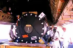 By March 1957, it was decided to place equal emphasis on the clean and dirty versions of the weapon.[4] By this point the weapon was to be 50 inches (1,300 mm) in diameter, with a warhead length of 120 inches (3,000 mm) and weight of 9,300 pounds (4,200 kg), while the bomb was to have a length of 145 inches (3,700 mm) and weigh 10,000 pounds (4,500 kg).[7] Compatibility with the B-58 was canceled in May 1957,[8] and the warhead version of the weapon was canceled in July 1957.[9]