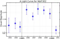 - ^ a b McNamara, Brian R.; Ianna, Philip A.; Fredrick, Laurence W. (1987). "The low-mass companion to Wolf 922". The Astronomical Journal. 93: 1245. Bibcode:1987AJ.....93.1245M. doi:10.1086/114405.