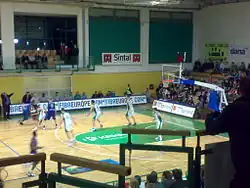 The first basketball club in Novo Mesto was founded in 1948.[2] In 1983, the club won its first Slovenian national championship.[3] After that, however, basketball saw a decline in Novo Mesto that lasted until the Slovenian independence in 1991. Soon, the team was climbing through the lower divisions and earned a promotion to the Slovenian First League in 1997, when it also took the name of its sponsor, Krka. A fourth-place finish in the national league allowed the club to qualify for the Korać Cup for the 1998–99 season. The big breakthrough came a year later, however, as Krka defeated historical rival Olimpija in the Slovenian championship finals to win the national title. That year, the team also played in the Saporta Cup. In 2000–01, Krka lost to Olimpija in the national league finals. In 2001–02, Krka qualified for the EuroLeague. Though Krka missed the Top 16, it was able to defeat all its opponents once, including Real Madrid, Panathinaikos, CSKA Moscow, and Skipper Bologna. At home, Krka finished as the runners-up in the Adriatic League, in the Slovenian Championship, and the national cup, losing to Olimpija on all three occasions.