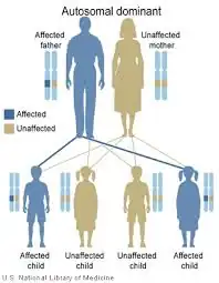 | For each child an affected parent has, there is a 50% chance of passing on the mutation, regardless of the sex of the child autosomal dominant | |