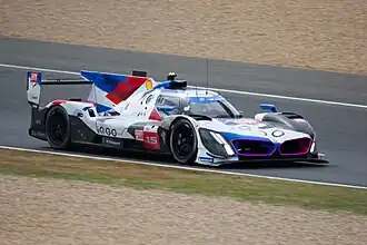 The BMW M Hybrid V8 is a sports prototype racing car designed by BMW M and built by Dallara. It is designed to the Le Mans Daytona h (LMDh) regulations, and debuted in the 2023 IMSA SportsCar Championship at the season-opening 24 Hours of Daytona.[5] It marks BMW's first return to the top-flight of sports prototype racing since the BMW V12 LMR in 1999.[6] The car also participates in the FIA World Endurance Championship from 2024 onwards.[7]