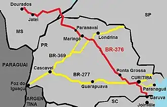 The BR-376, also known as Rodovia do Café (Coffee Highway), is a Brazilian federal highway that connects the cities of Garuva, in the state of Santa Catarina, to Dourados, Mato Grosso do Sul. It has a total length of 958.3 km.[1]