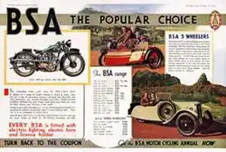 By 1930, the BSA Group's primary activities were BSA motorcycles and Daimler vehicles.[3]