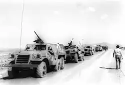 Egypt was one of the first major export customers for the BTR-152 outside Eastern Europe; in 1954, it ordered 200 from the Soviet Union, and between 1961 and 1966 it received another 600 in second-hand condition, possibly as military aid.[16] Syria likewise received at least 200 BTR-152s in 1966, and another 300 three years later. These were deployed against the Israel Defense Forces during the Six-Day War.[14] In Syrian service, they were utilized as makeshift infantry fighting vehicles rather than APCs; infantrymen remained on board and used the BTR-152 as a firing platform rather than disembark and fight on foot.[19] Nevertheless, failure to coordinate combined arms maneuvers often left the Syrian motorized infantry separated from their supporting tank formations and vulnerable to Israeli heavy armor.[19] Israel captured over 1,000 BTR-152s from Arab armies during the Six-Day War and the subsequent Yom Kippur War.[20]