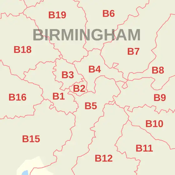 | B5 | BIRMINGHAM | Digbeth, Highgate, Lee Bank, Edgbaston | Birmingham |