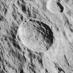This crater lies within the Mendel-Rydberg Basin, a 630 km wide impact basin of Nectarian age.