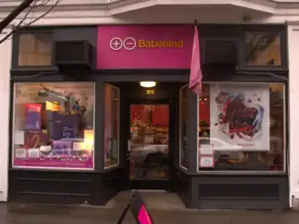 Babeland, until 2005 known as Toys in Babeland, is a sex toy boutique offering erotic toys, books and pornographic films. LGBTQ-owned[1] Babeland has an online store and four retail stores (in Seattle, Brooklyn, and two in Manhattan).