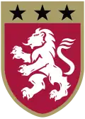 The arms of Bablake School are those of its benefactor, Thomas Wheatley: Sanguine a Lion Rampant Argent, on a Chief Or, Three Mullets of the second.