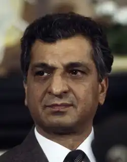 Kārmal was promoted to Chairman of the Revolutionary Council and Chairman of the Council of Ministers in December 1979. He remained in the latter office until 1981, when he was succeeded by Sultan Ali Keshtmand. Throughout his term, Kārmal worked to establish a support base for the PDPA by introducing several reforms. Among these were the "Fundamental Principles of the Democratic Republic of Afghanistan", introducing a general amnesty for those people imprisoned during Nur Mohammad Taraki's and Amin's rule. He also replaced the red Khalqist flag with a more traditional one. These policies failed to increase the PDPA's legitimacy in the eyes of the Afghan people and the Afghan mujahidin rebels, and he was widely seen as a Soviet puppet amongst the populace.[2] These policy failures, and the stalemate that ensued after the Soviet intervention, led the Soviet leadership to become highly critical of Kārmal's leadership. Under Mikhail Gorbachev, the Soviet Union deposed Kārmal in 1986 and replaced him with Mohammad Najibullah. After losing power, he was exiled to Moscow. It was Anahita Ratebzad who persuaded Najibullah to allow Babrak Kārmal to return to Afghanistan in 1991, where Kārmal became an associate of Abdul Rashid Dostum and possibly helped remove the Najibullah government from power in 1992. He eventually left Afghanistan again for Moscow. In 1996, Kārmal died from liver cancer.