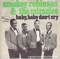 "Baby, Baby Don't Cry", released in December 1968, is a single recorded by the Miracles for Motown Records' Tamla label. The composition was written by Miracles lead singer Smokey Robinson, Motown staff writers Al Cleveland and Terry Johnson, a former member of The Flamingos. Robinson, Johnson, and Miracles member Warren "Pete" Moore were the song's producers.
