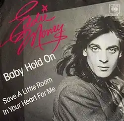 "Baby Hold On" is a song recorded by American rock singer Eddie Money. It was written by Money and guitarist Jimmy Lyon and released in 1977 as the first single from Money's self-titled debut album. The song reached number 11 on the Billboard Hot 100, number 4 on the Canadian Hot 100, and number 19 on the Kent Music Report.
