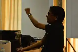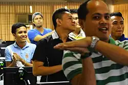 Professional baseball player Gerardo Parra of the Washington Nationals, having discovered the song through his young daughter, adopted it as his walk-up music to energize the flagging team on June 19, 2019.[49] The theme became popular among both teammates and fans, who used the shark clap whenever the Nationals got a hit, and eventually, at every Parra at-bat; fans also began wearing shark costumes to the stadium.[50] A stuffed baby shark was seen attached to the dugout railing during the 2019 National League Championship Series, which the Nationals won over the St. Louis Cardinals.[51] During the 2019 World Series between the Washington Nationals and the Houston Astros, the song was the subject of a singing bet between the Choral Arts Society of Washington and the Houston Chamber Choir, with the condition that the Houston Chamber Choir would sing Baby Shark if the Washington Nationals won the World Series and the Choral Arts Society would sing Deep in the Heart of Texas vice versa.[52] After the Houston Astros lost the World Series in seven games, the Houston Chamber Choir honored its promise by singing Baby Shark in its rendition and posting the video on its YouTube official account.[53] The Choral Arts Society, though winning the bet, returned the honor by performing live on TV a mashup rendition of Baby Shark and Deep in the Heart of Texas.[54] The craze of Baby Shark among Washington Nationals' fans culminated after the team's win; the connection was such that the Marine Band performed the song during the team's celebratory visit to the White House.[55]