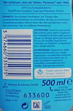 Typical components of baby oils are the highly purified mineral oil products, such as liquid paraffin (INCI name: paraffinum liquidum) and petroleum jelly (INCI name: petrolatum). These compounds are odorless and tasteless, dermatologically tested and approved, not allergenic, and hydrophobic; they contain no pesticides or herbicides. Preservatives and antioxidants are not necessary, because, unlike vegetable oils, paraffins cannot become rancid.[3] Nevertheless, the use of mineral oil in cosmetics is being criticized. Natural-cosmetic companies claim that mineral oil causes skin occlusion. Conventional cosmetic manufacturers and dermatologists and cosmetic chemists argue against that, and studies have shown no statistical difference between paraffin oil and vegetable oils in skin penetration and skin occlusion.[4][5] On the contrary, petrolatum-based preparations have been shown to be effective to the skin barrier function, even in premature infants.[6]