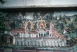 The “Panorama” mural, which runs along the outside wall of the refectory, represents the history of Bachkovo monastery pictorially. It provides a bird's eye view of the monastery with all the surrounding buildings at the time of the painting.