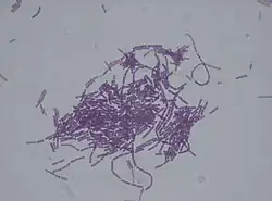 Bacillus thuringiensis (or Bt) is a gram-positive, soil-dwelling bacterium, the most commonly used biological pesticide worldwide. B. thuringiensis also occurs naturally in the gut of caterpillars of various types of moths and butterflies, as well as on leaf surfaces, aquatic environments, animal feces, insect-rich environments, flour mills and grain-storage facilities.[1][2] It has also been observed to parasitize moths such as Cadra calidella—in laboratory experiments working with C. calidella, many of the moths were diseased due to this parasite.[3]