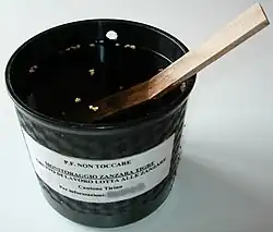During sporulation, many Bt strains produce crystal proteins (proteinaceous inclusions), called delta endotoxins, that have insecticidal action. This has led to their use as insecticides, and more recently to genetically modified crops using Bt genes, such as Bt corn.[4] Many crystal-producing Bt strains, though, do not have insecticidal properties.[5] Bacillus thuringiensis israelensis (Bti) was discovered in 1976 by Israeli researchers Yoel Margalith and B. Goldberg in the Negev Desert of Israel. While investigating mosquito breeding sites in the region, they isolated a bacterial strain from a stagnant pond that exhibited potent larvicidal activity against various mosquito species, including Anopheles, Culex, and Aedes.[6] This subspecies, israelensis, is now commonly used for the biological control of mosquitoes and fungus gnats due to its effectiveness and environmental safety.[7][8]