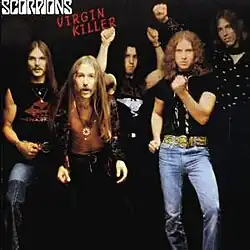 Virgin Killer is the fourth studio album by the German rock band Scorpions, released in 1976 by RCA Records. It was the band's first album to attract attention outside Europe.[3] The title is described as being a reference to time as the killer of innocence.[4] The original cover featured a nude ten-year-old girl, which stirred controversy in the United Kingdom, the United States, and elsewhere. As a result, the album was re-issued with a different cover in some countries.