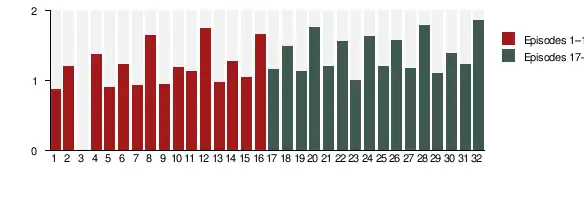 | 1–16 | 0.879 | 1.203 | N/A | 1.378 | 0.904 | 1.232 | 0.932 | 1.650 | 0.955 | 1.194 | 1.138 | 1.755 | 0.979 | 1.285 | 1.056 | 1.669 | |