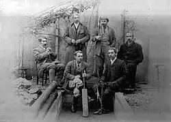 His six sons were keen cricketers and in 1878 the eldest son Alfred Roberts Robinson (1856-1949) received an invitation to bring a team to play West Town on August Bank Holiday. He recruited his five brothers Walter, Edgar, Sidney, Crescens and Theodore who were still living at Backwell House and five of his first cousins to form a team consisting entirely of Robinsons. The team became known as the Backwell House XI and thereafter for the next 87 years until 1964 the Robinson team which was always made up of descendants of the first team played a match on the August Bank Holiday.[13]
