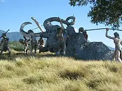 In the Valle de la Prehistoria visitors encounter dozens of life-size model dinosaurs sculpted in stone and other prehistoric creatures lurking in lush vegetation.