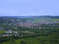 Bad Berka (German: [baːt ˈbɛʁka] ⓘ) is a German spa town, situated in the south of Weimar region in the state of Thuringia. With its almost 8,000 inhabitants Bad Berka is the second biggest city in Weimarer Land district (after Apolda, 23,000). The river flowing through the town, which is embedded in new red sandstone, is called Ilm. Since 1 December 2008, the city has incorporated the former municipality of Gutendorf.