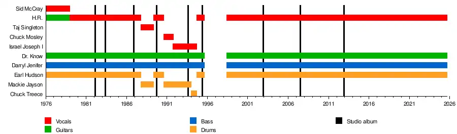 Bad Brains have released nine studio albums. They have broken up and reformed several times over their career, sometimes with different singers or drummers. The band originally formed in 1976 as a jazz fusion act under the name Mind Power. Their classic lineup includes Dr. Know (guitar), Darryl Jenifer (bass), and brothers Earl (drums) and Paul "H.R." Hudson (vocals, guitar). This lineup was intact until 1987 and has reunited periodically in the years since. Many notable bands and artists cite Bad Brains as an artistic influence on their music.