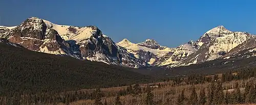 Bad Marriage Mountain (8,350 feet (2,545 m)) is located in the Lewis Range, Glacier National Park in the U.S. state of Montana.[3] The mountain was named by Superintendent E. T. Scoyen for a Blackfoot Indian leader Bad Married. Bad Marriage Mountain became the accepted colloquial name. At one time, the summit was called Elk Tongue by J.W. Schultz, an early chronicler of park geography and activities. Because no Blackfoot equivalent to Elk Tongue was found, the English name was dropped and Bad Marriage Mountain became the official name.[4]