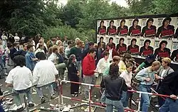 The anticipation for Bad was extremely high, with journalists from Slant Magazine and Miami Herald, respectively, asserting it as the most anticipated album in history.[70][71][72][73] Michael Goldberg and David Handelman had predicted that "If Bad sells 'only' 10 million copies, that will be more than virtually any other record but could be viewed as a failure for Michael Jackson".[74] Released on August 31, 1987,[66][75] a brief second wave of 'Michaelmania' took place as fans around the US rushed to purchase Bad.[76] A manager at a US record store compared the intense demand for Bad to the demand that Bruce Springsteen's Live 1975–85 experienced the previous year and the Beatles' debut album Please Please Me experienced in July 1987 (released in the US for the first time).[76]