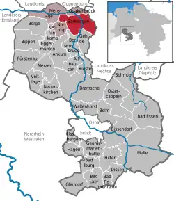 Badbergen is a municipality in the district of Osnabrück, in Lower Saxony, Germany. It lies on the River Hase.