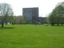 Badeparken ("the Bathing Park") is a 12-acre (4.8 ha) public park in the city centre of Sandefjord, Norway. It is near the harbor and is home to a playground, sculpture park, several reflection mirrors, and an amphitheater. The park was established for guests at Sandefjord Spa in 1902. The park’s site was previously a field, Badejordene, which belonged to Hjernesgården (Hjertnes Farm). Sandefjord Spa established the park here in the early 1900s. The city had plans to develop housing in the park in 1936, however, the plans were revoked and it remained a park. The park received its current look between World War II and 1953 after parts of Sandefjord Spa were demolished and walking paths, trees, and a music pavilion were installed in the park.[2][3]