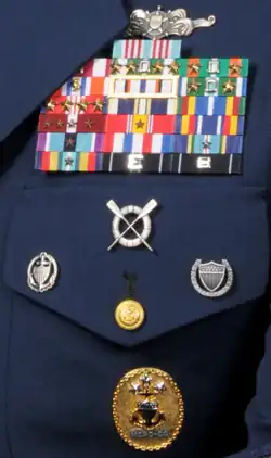 In addition to the U.S. Coast Guard badges listed below, uniform regulations also authorize the wear of some specific U.S. Navy insignia as well as some Department of Defense and Executive Branch Identification badges.[1][2]