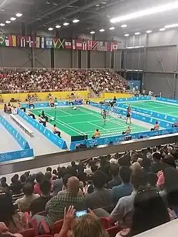 Badminton competitions at the 2015 Pan American Games in Toronto were held from July 11 to 16 at the Markham Pan Am Centre (Atos Markham Pan Am Centre) in Markham.[1] Due to naming rights the arena was known as the latter for the duration of the games.[2] A total of five badminton events will be held: two each for men and women, along with a mixed doubles event.[3]