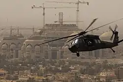 In 2003, the United States-led coalition invaded Iraq.[138] Coalition forces launched massive aerial assaults.[138] The resistance of the Iraqi Army of the city's airport delayed coalition's entry into Baghdad.[139] Following the fall of Baghdad on 9 April 2003, the government lost its power.[138] A statue of Saddam was toppled in Firdous Square, symbolizing the end of his rule.[138] Many of the former government officials were either killed or captured, while others managed to escape and flee.[140] After the overthrow the government, the Coalition Provisional Authority (CPA) was formed.[141] CPA's decisions caused a power vacuum.[141][142] Also two minor riots took place in 2003, on 21 July and 2 October, causing some disturbance in the population.[143][144] Shortly after the invasion and the fall of the regime, an insurgancy began against the U.S-led rule of Iraq, consisting of former government officers and Islamist groups.[145]